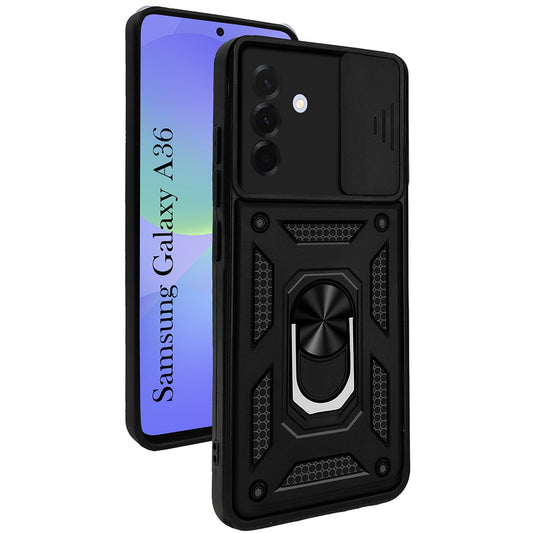 Galaxy A36 Hybrid Dual Armor Case with Camera Slide Cover – Shockproof Polycarbonate Protection
